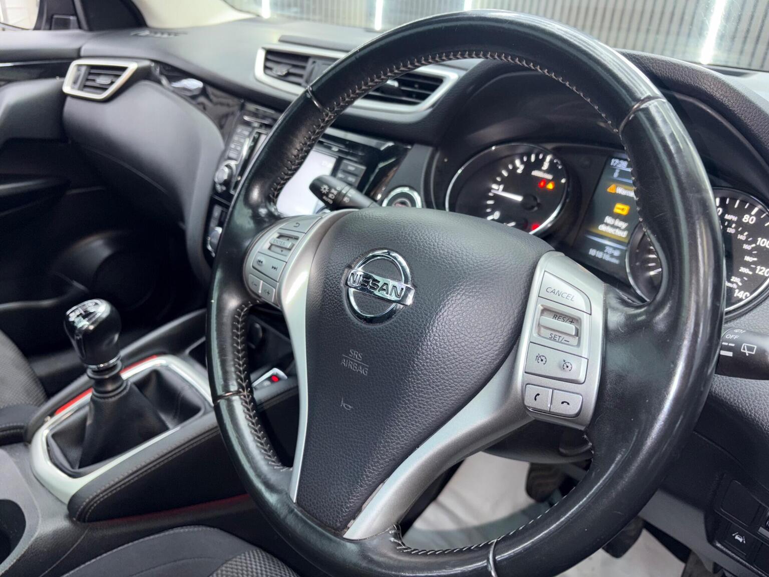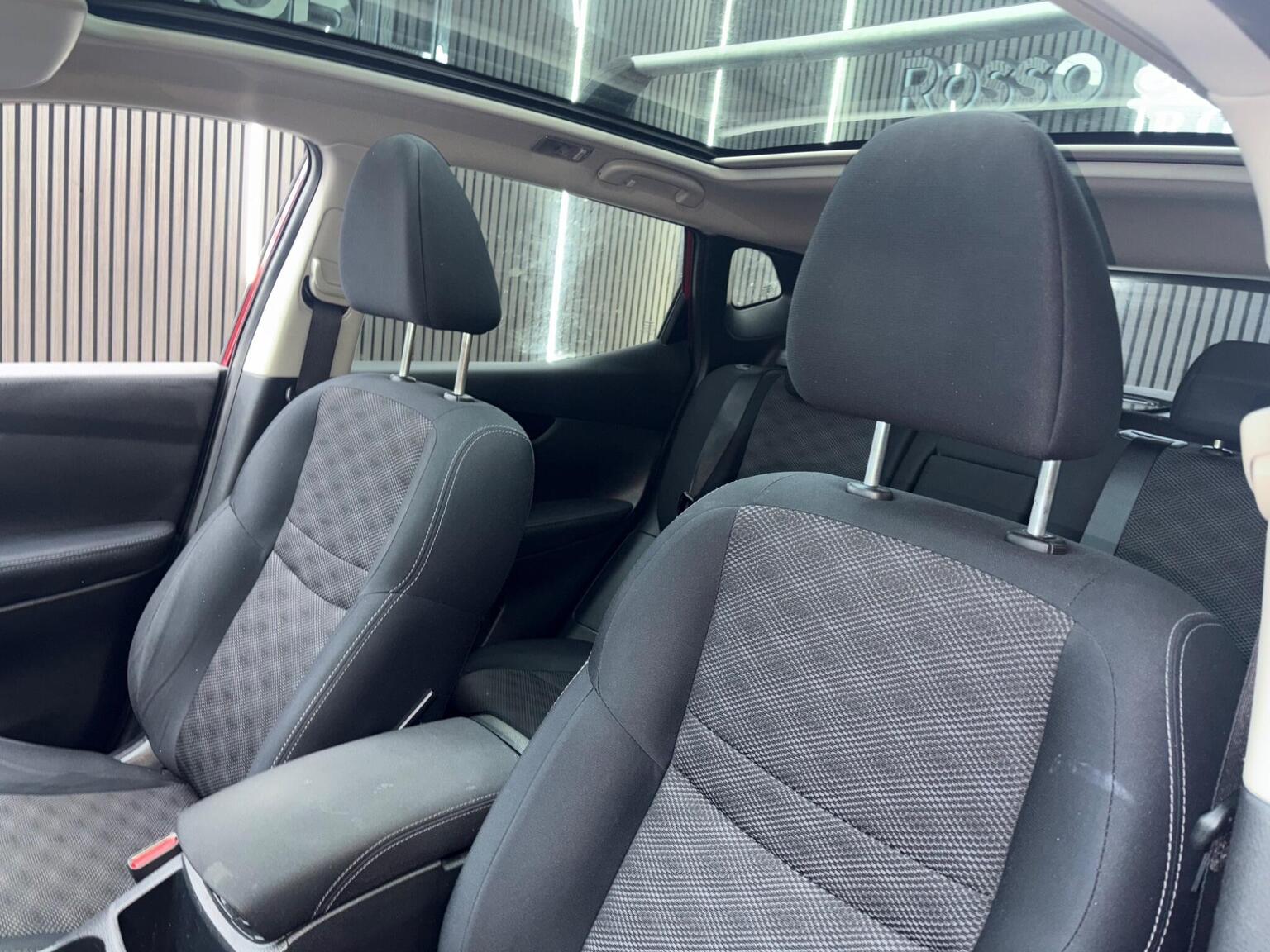 17in Alloy Wheels - 5-Spoke in Silver, 6 Speakers, 60-40 Split Rear Folding Seats, ABS - Anti Lock Brakes, AUX-In Socket, Airbag - Driver, Airbag - Passenger, Airbags - Curtain, Airbags - Side, Alarm, Armrest - Rear, Auto Dimming Rear View Mirror, Auto Rain Sensing Wipers, Black Honeycomb Front Grille, Body Coloured Handles, Brake Assist, Bumpers - Body Coloured, Chrome Glass Surround, Climate Control - Dual Zone, Cruise Control with Speed Limiter, DAB Radio, Door Mirrors - Body Coloured, Door Mirrors - Power Fold and Heated, Driver Seat Height Adjustment, EBD - Electronic Brakeforce Distribution, ESP - Electronic Stability Programme, Electric Speed-Sensitive Power Steering, Front Armrest, Front Collision Avoidance, Front Fog Lights, Front and Rear Electric Windows, Head Restraints - Active Front, Head Restraints - Rear, Headlights - Auto, Headlights - Auto High-Low Beam, Hill Start Assist, ISOFIX Childseat Anchorage Points - Middle Row Outer Seats, Immobiliser, Intelligent Key, Interior Ambient Lighting, LED Daytime Running Lights, Lane Departure Warning, Leather Gear Knob, Leather Steering Wheel, Luggage Board System, Lumbar Support, Panoramic Glass Roof, Parking Sensor - Front, Pollen Filter, Puncture Repair Kit, Push Start-Stop Button, Radio-CD, Rear Cupholder, Rear Door Child Locks, Rear Parking Sensor, Rear Privacy Glass, Rear View Camera, Satellite Navigation - Nissan Connect, Service Indicator, Smart Vision Pack, Speed-Sensitive Autolock Function, Steering Wheel Mounted Audio Controls, TPMS - Tyre Pressure Monitoring System, Telephone - Bluetooth Integration, Tilt and Telescopic Adjustable Steering Wheel, Touch Screen 7in, Traction Control, Traffic Sign Recognition, Trip Computer, USB Port, e-PKB - Electric Parking Brake